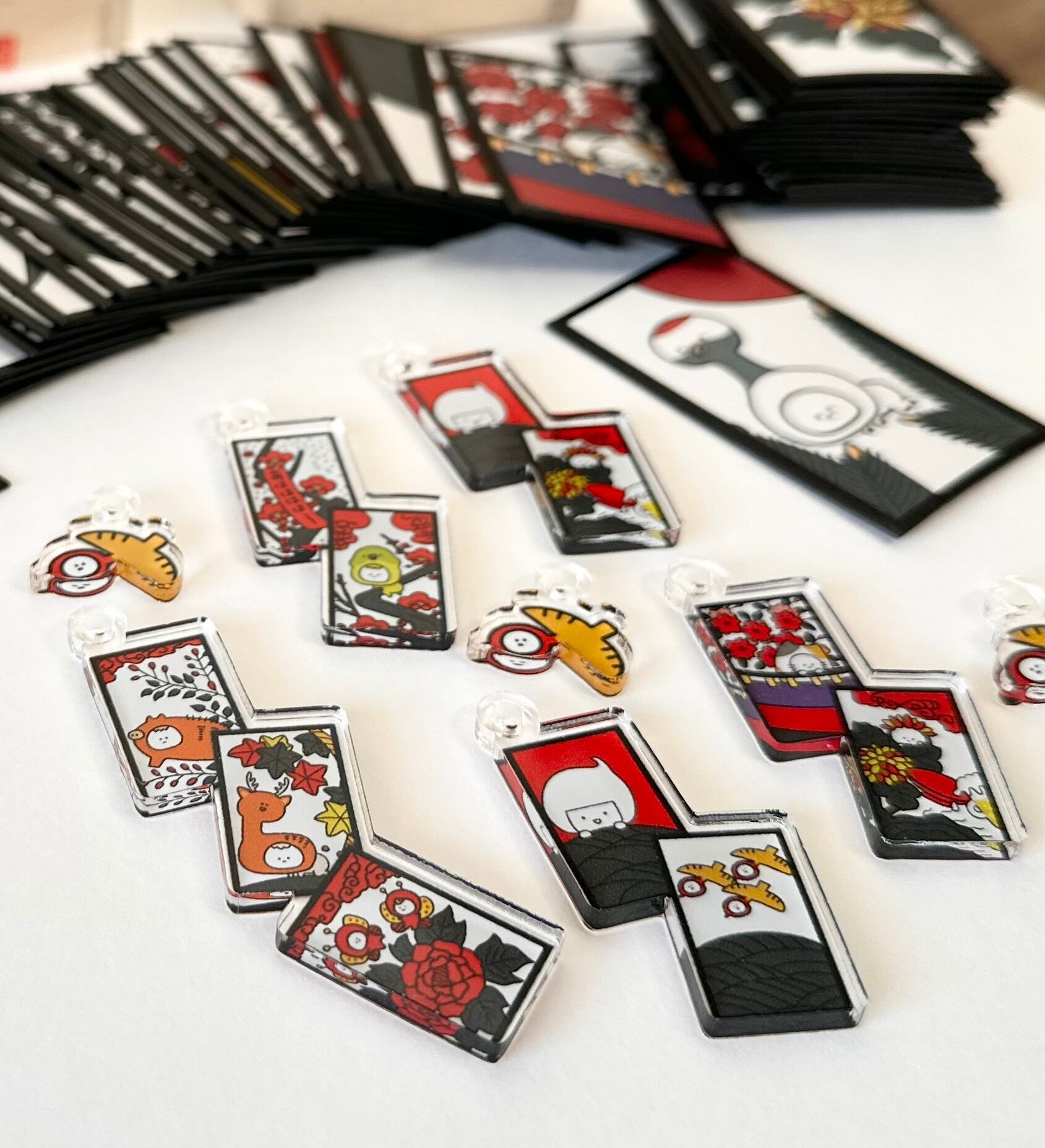 オリジナル花札「花さんぽ」からお気に入りの札をぎゅっと閉じ込めた小さなチャームができました。